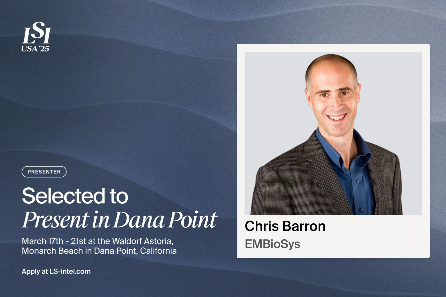 We are pleased to announce that EMBioSys Co-Founder and CEO, Chris Barron will be presenting at the LSI USA Emerging Medtech Summit on March 19, 2025. This is a great opportunity to share the latest advancements for our iEF Therapy that offers new hope for women diagnosed with triple-negative breast cancer.