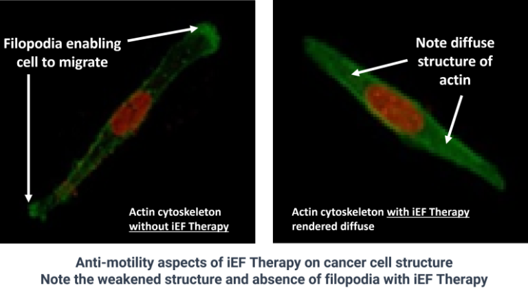 Efinia™ alters the cancer cell's cytoskeleton making it unable to move